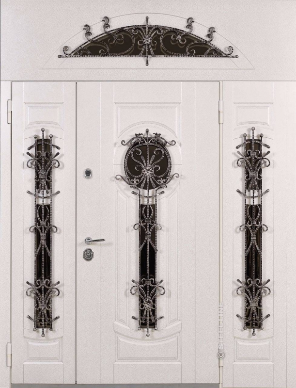 Входная дверь с кованой ручкой и фрамугой №6 представляет собой элегантное и надежное решение для тех, кто ценит не только безопасность, но и стиль. Эта модель идеально подойдет для оформления парадных входов в дома и офисы. Внешняя отделка из плиты МДФ придает двери современный и чистый вид, который сохраняется долго благодаря стойкости к внешним воздействиям. Благодаря профильной трубе с толщиной металла 2 мм и ребрам жесткости, конструкция двери гарантирует прочность и долговечность. Дополнительный элемент — кованая ручка, которая добавляет изысканности и подчеркивает высокий класс изделия. Стандартная комплектация не включает шумо- и теплоизоляцию, однако она может быть установлена по желанию. Резиновый уплотнитель с двумя контурами обеспечит хорошую герметичность, защищая от ветра и пыли. Подходит для установки как в частных домах, так и в офисах, привлекая внимание своим необычным и стильным дизайном. Входная дверь с кованой ручкой и фрамугой №6 от производителя: быстрое изготовление и монтаж в Малаховке, индивидуальные размеры, широкий выбор материалов и фурнитуры, официальная гарантия до 10 лет.
