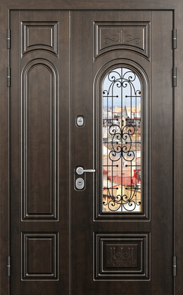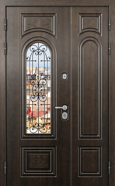 Двупольная стальная дверь со стеклопакетом и кованым узором №24 станет отличным выбором для тех, кто ценит не только безопасность, но и стиль. Внешняя и внутренняя отделка выполнены из МДФ, что придает двери элегантный и современный вид, а также обеспечивает высокую устойчивость к механическим повреждениям и износу. Стеклопакет и кованые элементы добавляют изысканности и уникальности, при этом сохраняя прочность конструкции. Двупольная стальная дверь со стеклопакетом и кованым узором №24 от производителя: быстрое изготовление и монтаж в Малаховке, индивидуальные размеры, широкий выбор материалов и фурнитуры, официальная гарантия до 10 лет.